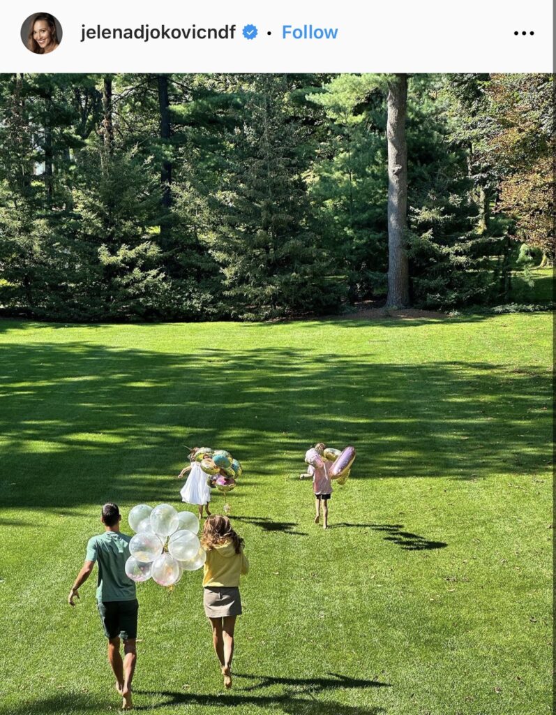 Jelena, Novak, Tara i Stefan trčali su bosi po travi, svi su nosili balone i očigledno uživali u trenutku.