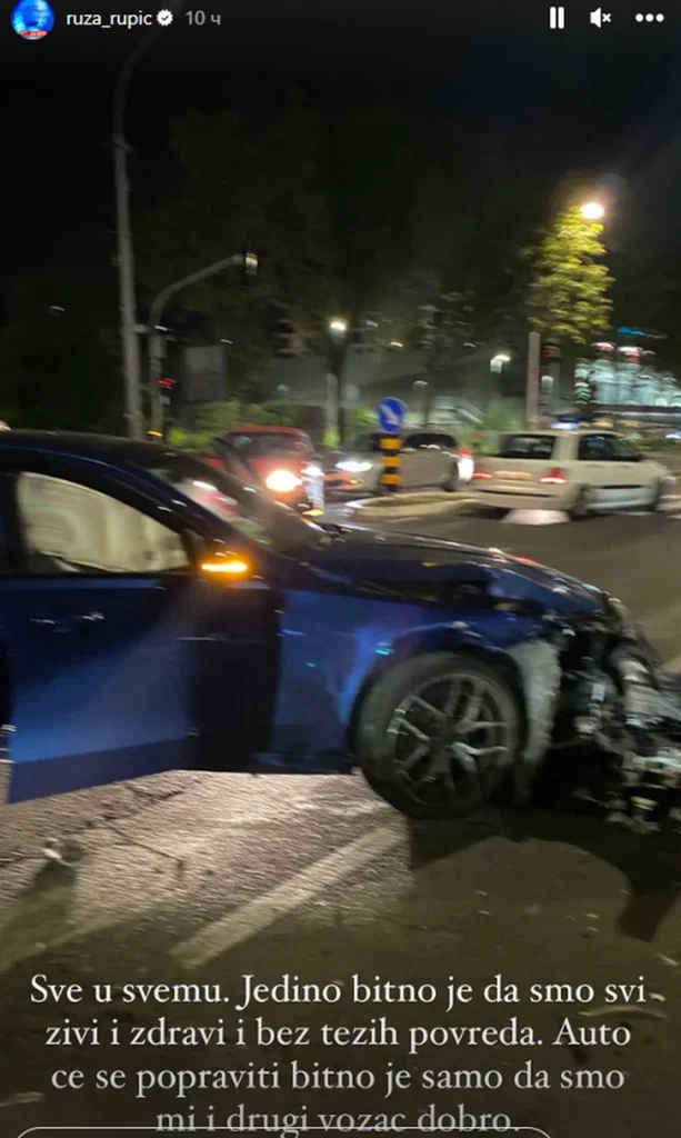 – Dakle, što se tiče udesa, istina je da smo momak i ja imali udes. Sva sreća niko nema teže povrede i u redu smo. Bili smo oboje u urgentnom, uradili sva snimanja, sve nalaze i sve je u redu. Hvala vam na porukama podrške i izvinite što smo vas zabrinuli večeras – napisala je Ruža u svojoj objavi, pa dodala: