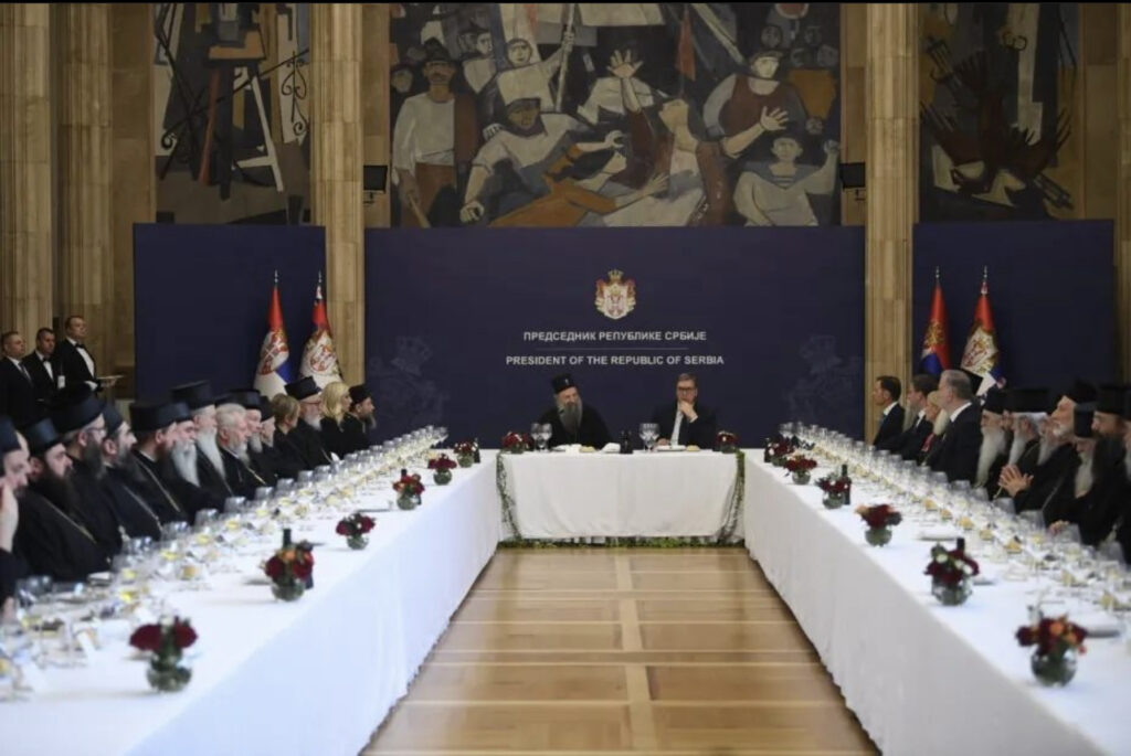Predsednik Republike Srbije Aleksandar Vučić ugostio je danas na ručku patrijarha srpskog Porfirija i Sveti arhijerejski Sabor SPC.