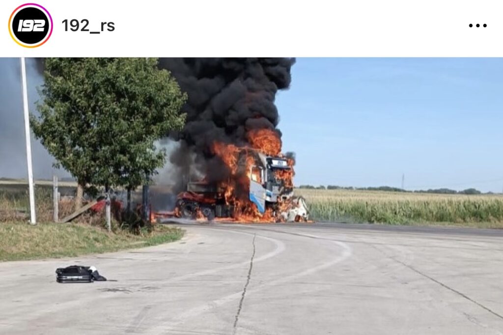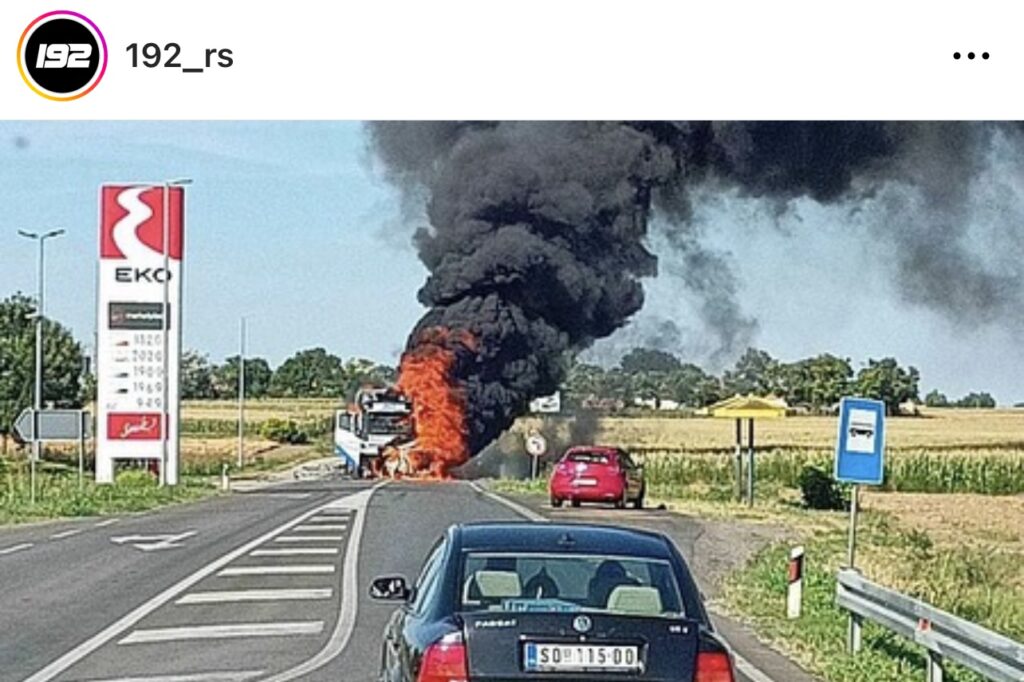 Kako se vidi na snimku objavljenom na instagram profilu „192_rs“, kamion se pretvorio u buktinju, a iz njega je kuljao crn gusti dim.