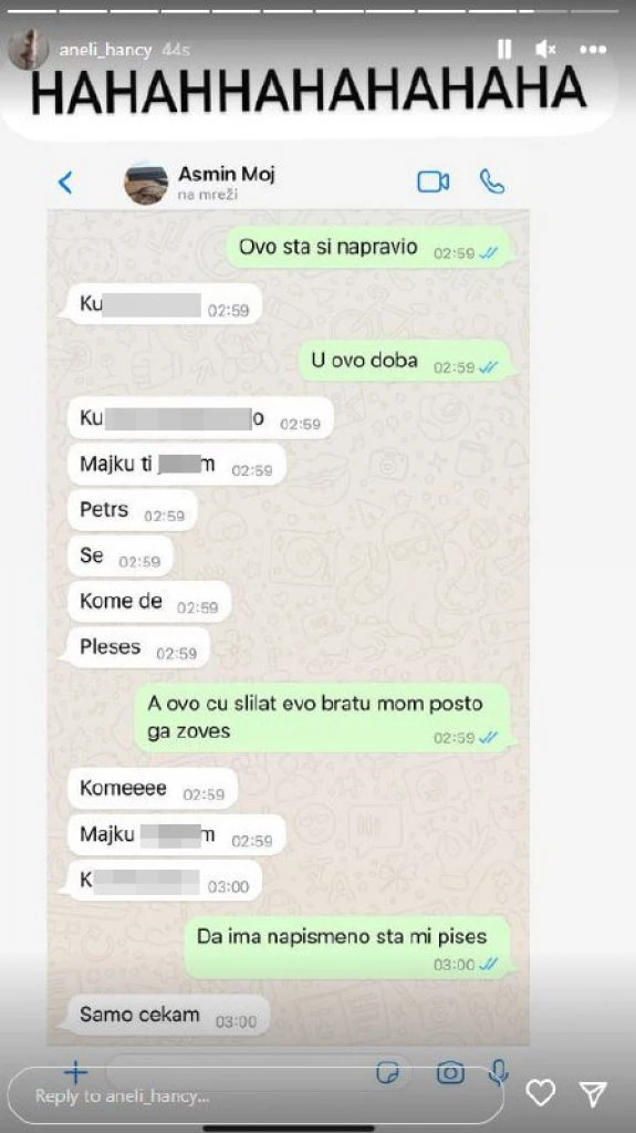 Sita Ahmić ne dozvoljava Asminu da blati njenu sestru, pa je i danas objavio deo prepiske, u kojoj Durdžić ljubomoriše Aneli, vređa je i preti, zato što je plesala za nekog drugog muškarca.