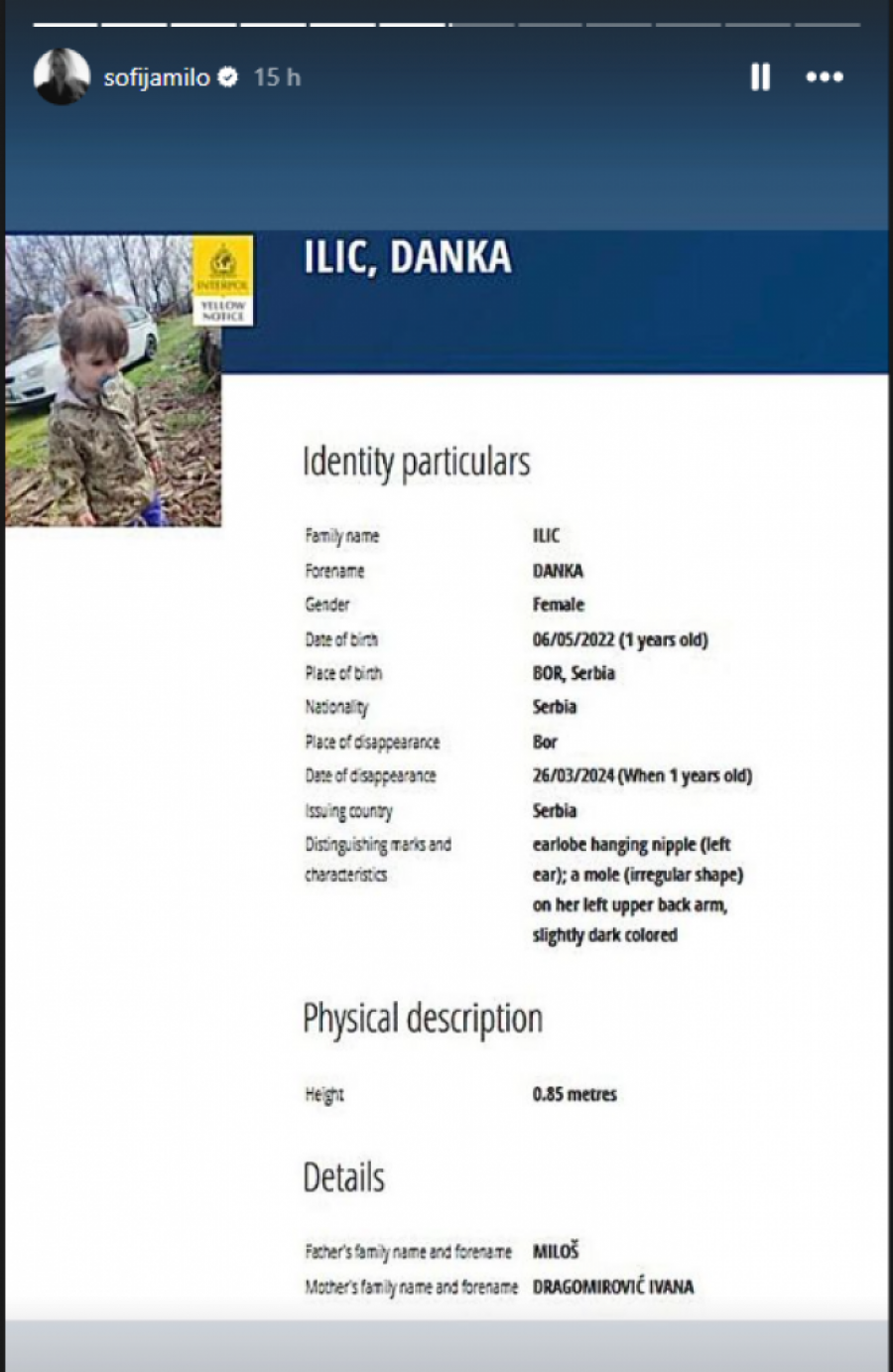 Sofija Milošević objavila informacije o nestaloj devojčici Danki Ilić!