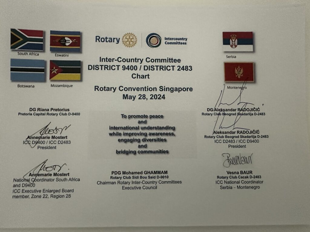 „Ovi potpisani sporazumi omogućavaju unapređenje i proširenje međunarodne saradnje u oblasti školstva, zdravstva, ekologije, kulture, ljudskih prava, kao i promocije mira u svetu. Ovo je za naš distrikt još jedan korak u međunarodnoj saradnji kojom se otvaraju vrata za projekte sa klubovima iz Afrike“, naglasio je Radojičić.