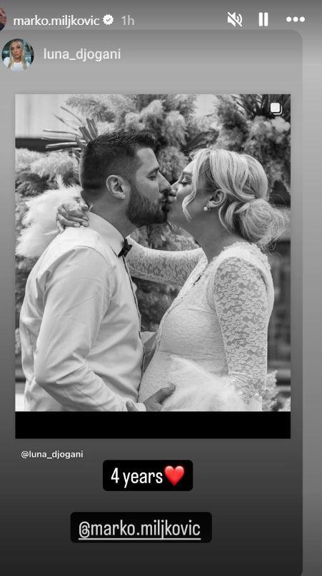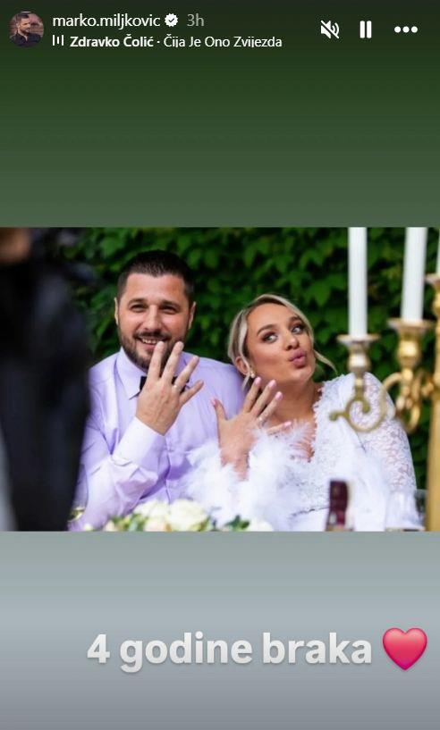 Naime, Marko je objavio fotografiju sa venčanja i otkrio da im je danas četvrta godišnjica braka.